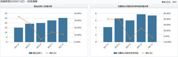 涪陵榨菜近5年营收及利润变化 数据来源:wind