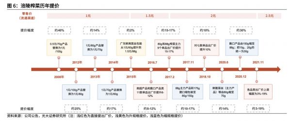 涪陵榨菜历年提价梳理 数据来源:光大证券