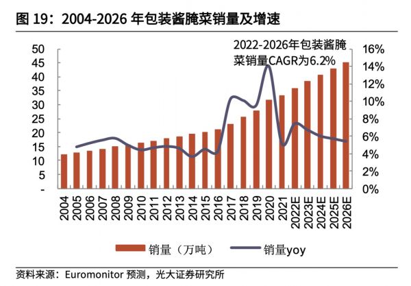 2004年至2026年包装酱腌菜发展变化 数据来源:光大证券
