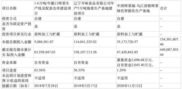 为此,市场一度猜测涪陵榨菜会继续多元化战略,毕竟在2015年,涪陵榨菜以1.3亿元收购四川惠通食业有限公司,进军泡菜行业,并于2018年投建辽宁开味食品有限公司年产5万吨泡菜生产基地建设项目,以及1.6万吨/年脆口榨菜生产线及配套仓库建设项目。