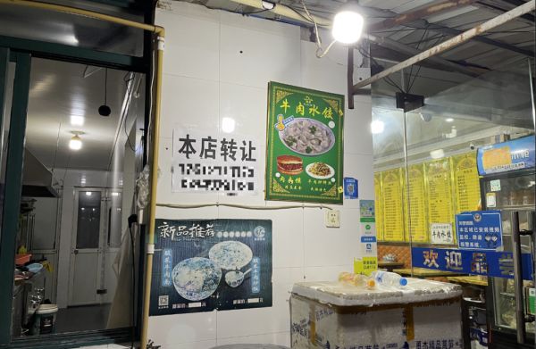 与努力通过开源节流来维持经营的门店相比,一些经营规模较小的街边餐饮门店已经开始打起了退堂鼓。惊蛰研究所观察到,不少还在经营中的餐馆都在门店内的醒目位置贴出了转让广告,甚至有店铺为了尽快将店铺出租出去,选择不收转让费。而“旺铺招租”的广告和店内萧条景象的对比下,显示出一些尴尬和无奈。