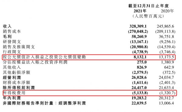 显然,小米收入占比最少的互联网业务,也在此次税收调整范围内。一个可以印证的数据是,2020年小米的所得税费用为13.2亿元,2021年这一项成本支出直接上升至51.3亿元,所得税费用总计增长了38.1亿元。