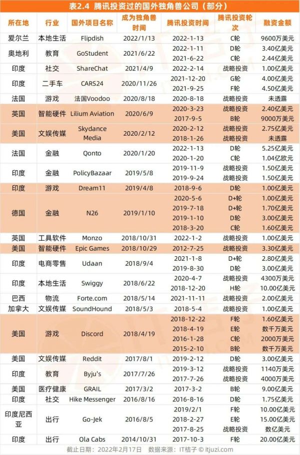 编者按:本文来自微信公众号“IT桔子(ID:itjuzi521)”,原文标题《别说中国了,腾讯在海外投资的独角兽都有24家了》,作者吴梅梅,36氪经授权转载发布。