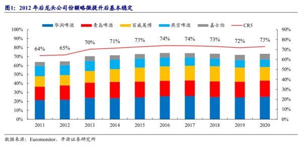 2012年后龙头企业份额变化 数据来源:Euromonitor 开源证券研究所