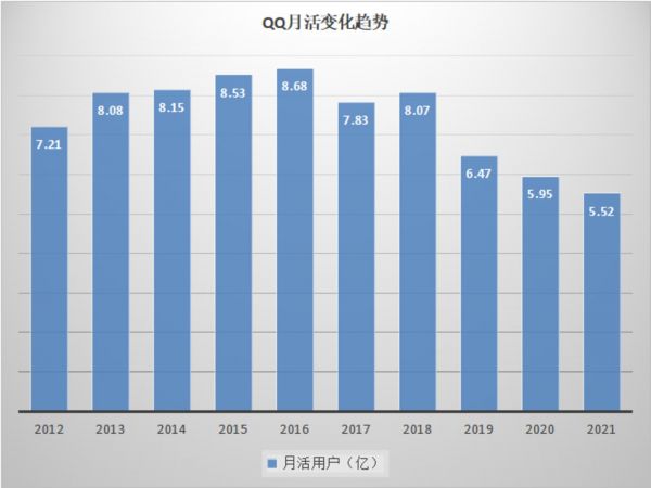 腾讯的社交生态,到了不得不转型的时候。近些年来,微信、QQ的用户增长缓慢,尤其是QQ已经“见顶”,2021年财报显示,QQ的月活用户为5.52亿,同比下降7.2%,环比下降3.8%。