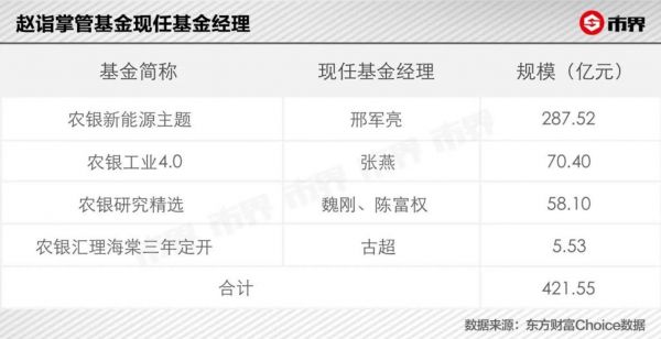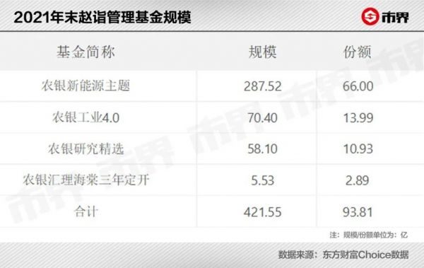 有了名气,赵诣的管理规模一路走高,离职前已高达421.55亿元。