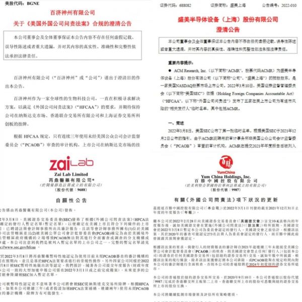 再鼎医药同时在美股和港股挂牌。它在向港交所递交的文件中称,公司已经在2021年报中披露,正在评估、设计和执行额外的业务程序和控制变更,以满足《问责法案》的要求。