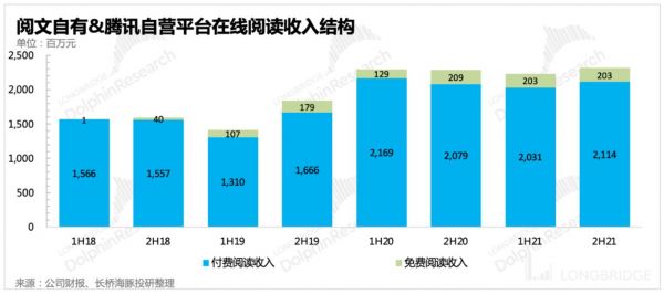 虽然免费用户规模上远不及番茄小说,但阅文向免费低头后的好处是实打实的。根据阅文集团财报数据,2021年阅文在线阅读MAU达到2.5亿,同比增8.6%,净增1970万,可谓刷新了纪录。而其中起到至关重要作用的就是免费阅读,截至2021年12月,免费阅读内容的DAU约1500万人,同比增长50%。