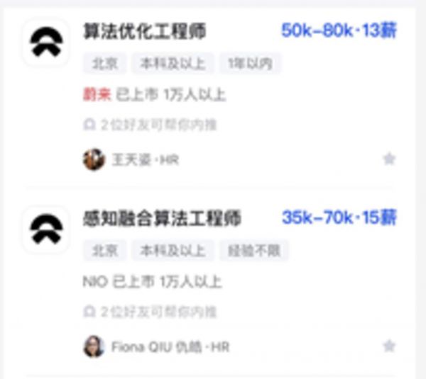 投中网通过查询各大招聘网站发现,这样的“高水平薪酬”在造车新势力已经是常态。例如,蔚来汽车招聘的算法研发工程师,薪水范围就在30K-80K;小鹏汽车的自动驾驶视觉算法资深工程师、自动驾驶软件高级专家的年薪则高达60-80万元;一些公司总监级别的年薪基本都在百万以上。