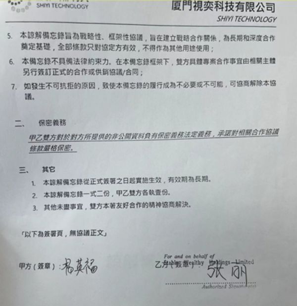 他还表示,“更让人怀疑的是,视奕提供的证明材料都是备忘录这样不具备法律效率的资料,说自己给对方定金1000多万,也只是口头,并没有拿出双方银行往来记录等实证,所以也值得怀疑。”