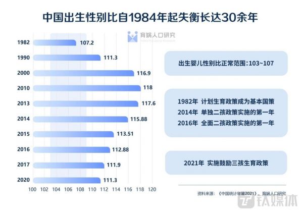 报告称性别比长期失衡是造成婚育不匹配的重要原因。中国出生性别比自1984年起失衡长达30余年,虽然2014年开始生育政策放宽后失衡情况得到一定缓解,但七普数据显示,2020年我国20-40岁的男性较女性多1752万人。