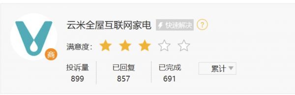 翻看黑猫投诉平台,截止发稿,关于“云米全屋互联网家电”的投诉数量已经达到了899个,其中很多都是关于产品质量、功能问题的,2021年云米也曾因为冰箱播放广告而卷入风波当中。