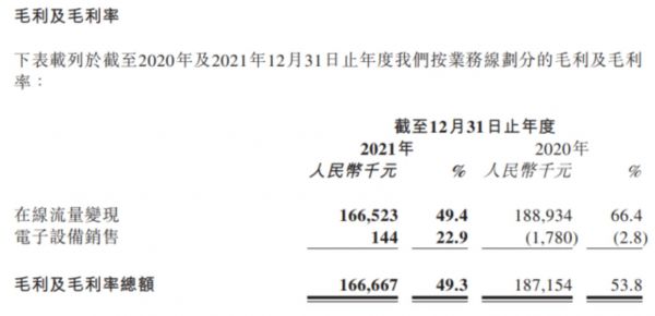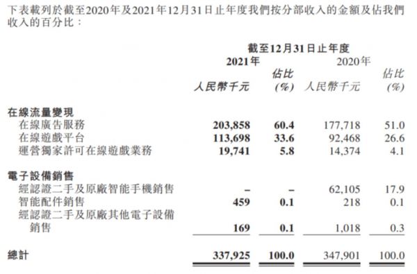 其中,在线广告服务板块2021年度收入约人民币203.9百万元,占总营收60.4%,同比2020年增加约14.7%。