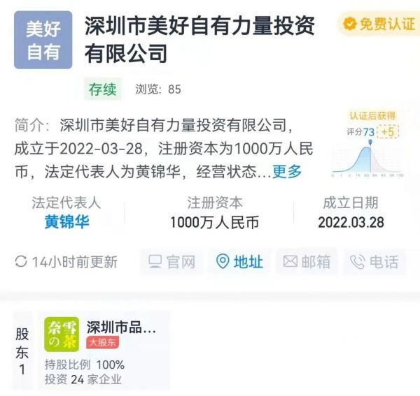3月28日,一家名为深圳市美好自有力量投资公司注册成立——仔细一品,这竟是奈雪的茶成立的投资公司。