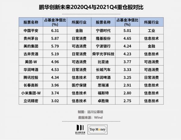 不过,自去年二季度以来,王宗合明显改变了策略,行业配置更均衡,持股更分散,尤其是成立时间较晚的鹏华创新未来,前十持仓集中度多数时候在50%以下,甚至不到40%,行业分布上,也从重配消费股,向新能源车、光伏、半导体等多个行业延伸。