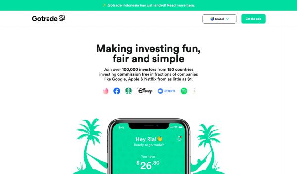 这家初创公司由Rohit Mulani、Norman Wanto、David Grant三人于2019年联合创办,致力于降低投资门槛、提供更多机会和选择。「Gotrade」允许用户以最低1美元的投资额购买纽交所或纳斯达克上市的股票,且不收取交易佣金。如果用户希望以当地货币进行支付,平台则会负责将这笔资金按照实时汇率转为美元,并收取0.5%至1.2%的外汇费用。
