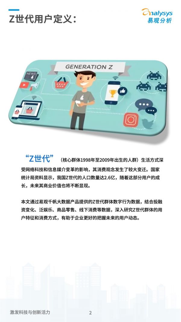 本文通过易观千帆大数据产品提供的Z世代群体数字行为数据,结合投融资变化、泛娱乐、商品零售、线下消费等数据,深入研究Z世代群体的用户特征和消费方式,有助于企业更好的把握未来的用户动态。