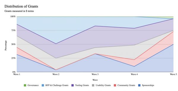 在 Uniswap 协议发展到可以被大量用户采用的规模之前,资助外部项目没有多大意义。直到上两波 Grant 之前,政府都没有将资金用于治理。相反,大多数 Grant 被划分给可用性、工具和 RFP(提案/挑战请求)。