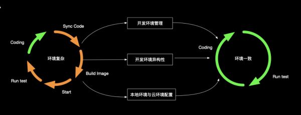 开发环境很多时候无法原地调试,过去2s就能完成的一次debug,现在很多场景编译、打包到测试需要10分钟。需要一套标准化的开发环境封装解决以上异构问题。