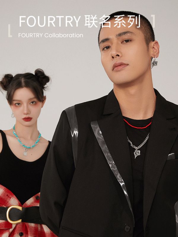 比如2021年品牌热卖的“月球蹦迪”系列产品,将蹦迪场景常见的打碟机与不规则陨石、飞行轨迹等要件抽象成美学元素,与象征月球的珍珠进行创意组合。新年发布的<潮流合伙人>FOURTRY联名系列也利用了传统文化进行国潮风设计,摘取了颇有年味的中文字融合到饰品中,通过色彩和工艺带入一种新春拜年的场景感。