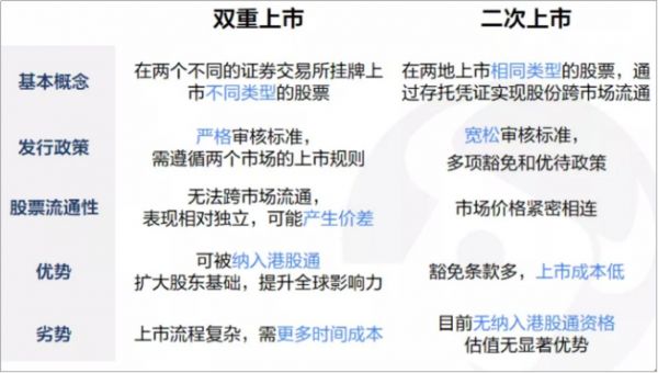 从上市流程来看,二次上市联交所会采取相对宽松的审核标准,而且有多项豁免和优待政策。双重主要上市回港流程则是完整的香港上市申请,需要经历复杂的申请和批准流程。