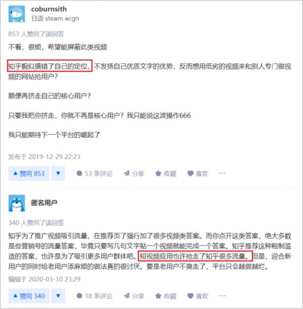 随着知乎在视频业务上的挺进,不满的声音也充斥了整个知乎平台。