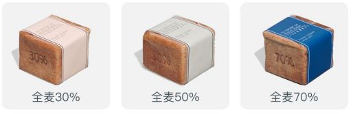 第二个系列为全麦吐司,拆分为包含30%、50%、70%不同比例全麦粉含量的全麦吐司产品。对于全麦吐司来说,口感和营养是相制约的关系。因为全麦粉虽然具有更加丰富的营养结构,但口感和口味上却比用来制作传统吐司的小麦粉略逊一筹。