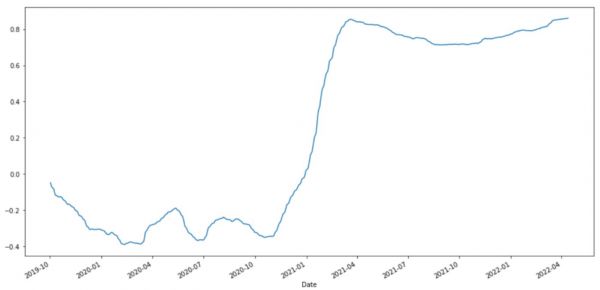 我们又制作了美团与恒生指数动态关系走势图,见下图