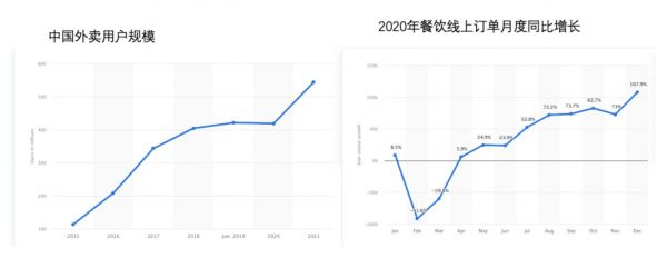 在上图中我们可以得出:1.外卖用户规模仍在膨胀中;2.外卖有明显的月度景气值,下半年要优于上半年,且增速仍然可观。