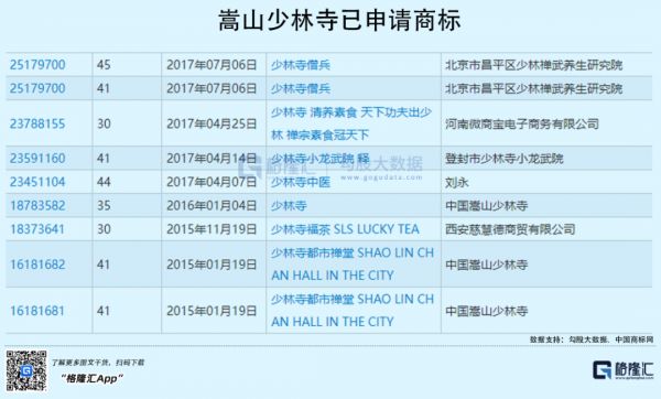 二十多年后,根据国家知识产权商标局中国商标网公布的数据,嵩山少林寺申请的商标,已经多达666个。