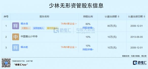 后者再进行穿透,背后则是少林无形资管,和在少林无形资管任副总的袁明珠。少林无形资管的实控人,正是持股80%的少林寺方丈释永信。