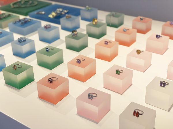 具体到方法论,51EJ遵循以「与消费者共情」为基本逻辑的设计流程,主要分为以下五步:第一,调查社会现状(分为历史溯源、心理学分析、文化考证、社会学解剖、行为实验);第二,定主题(比如有纪念意义的物品,可以延伸到定婚戒等iconic jewelry、传家宝、纪念怀表等memorial jewelry三个方面);第三,以特定主题为中心,将抽象概念具象化,进行多形式创作,比如定婚戒不同时期的样式和材质;第四,技术创新,比如创新切割、拼接方式等;第五,样品筛选和To B市场验证。