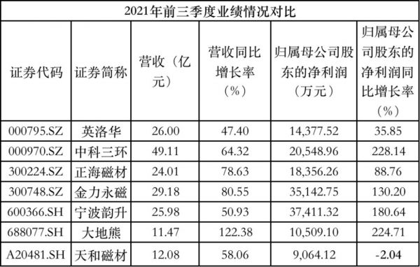 (2021年前三季度稀土永磁企业业绩对比,来源:wind)