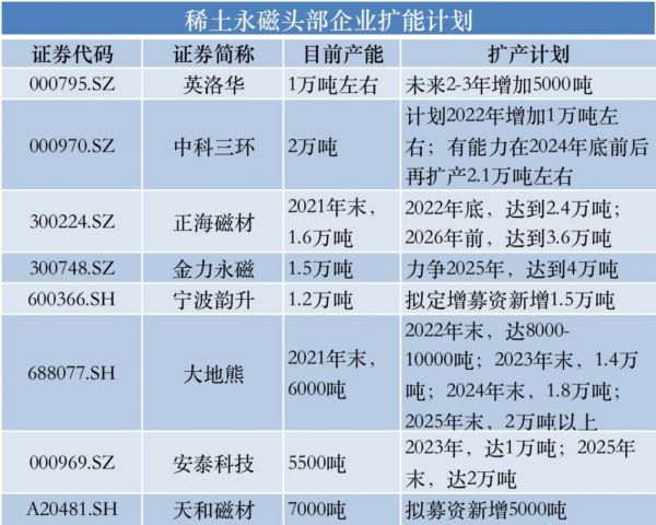 (稀土永磁头部企业扩能计划,来源:钛媒体APP根据公开资料整理)