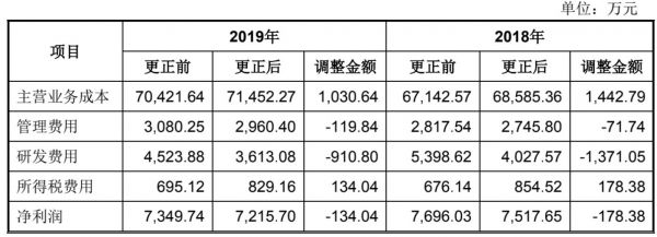 事实上,从科创板转战上交所主板,天和磁材变更的可不止募投项目和金额。在审计机构未变的情况下,公司调减了2018年和2019年的研发费用中的材料费和薪酬,因此造成公司该2年财务数据出现变化,净利润均减少了100多万。