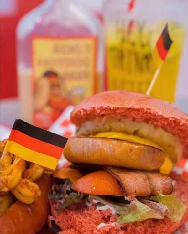 相比容易产生亚硝酸盐的腌制香肠和加入淀粉的火腿肠,中国消费者较少吃到无添加且含有卤汁的德式纯肉肠。以爆品—小龙虾热狗为例,首先采用了让面包更显松软的欧包工艺,并添加红丝绒粉,以此衬托产品整体的颜色;其次,采用冰水锁鲜工艺,呈现出一口爆汁的效果;再次,在面包和香肠的基底之外,加入产自江苏区域的小龙虾;最后,参考近年来流行的川香口味,搭配年轻用户喜好的麻辣配方。