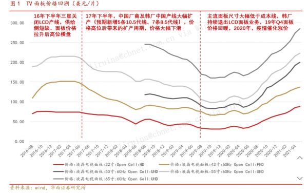 事实上,面板的周期属性已经在过去五年间得到了充分验证。根据华西证券统计,面板供应决定面板价格,2014-2015年,全球8.5代线产线扩张,2015年-2016年面板价格出现跳水。2016年下半年开始三星关停部分LCD产线,面板价格快速回升并在高位维持将近1年时间。