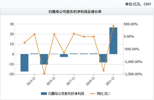 彩虹股份近年来的盈利起伏也恰好与这一时间线基本呼应。数据显示,2014年至2021年,彩虹股份归母净利润分比为-10.24亿元、0.5亿元、-2.73亿元、0.6亿元、0.61亿元、0.65亿元、-8.07亿元、26.69亿元。