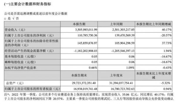 2022年一季报,科大讯飞延续了上一年的趋势。数据显示,一季度科大讯飞营业收入为35.06亿元,同比增加40.17%;净利润为1.11亿元,同比回落20.57%;扣非净利润为1.46亿元,同比增加37.73%。
