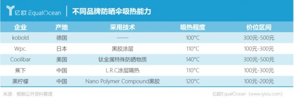 在国际市场,德国和日本是中高端专业防晒品牌代表。其中,德国高端专业太阳伞品牌Kobold已有167年历史;在日本,也有知名品牌Wpc.和macocca等。但由于价格相对昂贵和销售渠道受限等原因,这些品牌并没有在中国流行起来。