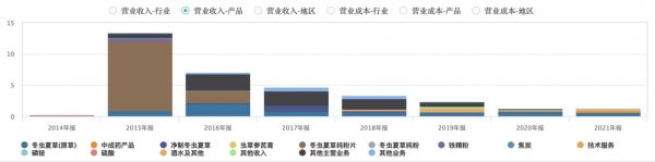一时之间,虫草业务名声大噪。2015年年报显示,青海春天冬虫夏草纯粉片营收为11.17亿元,占总营收比例为79.67%。