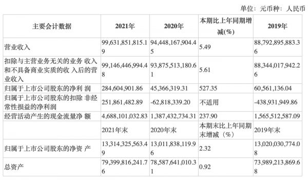 近三年四川长虹业绩表现 数据来源:2021年年报