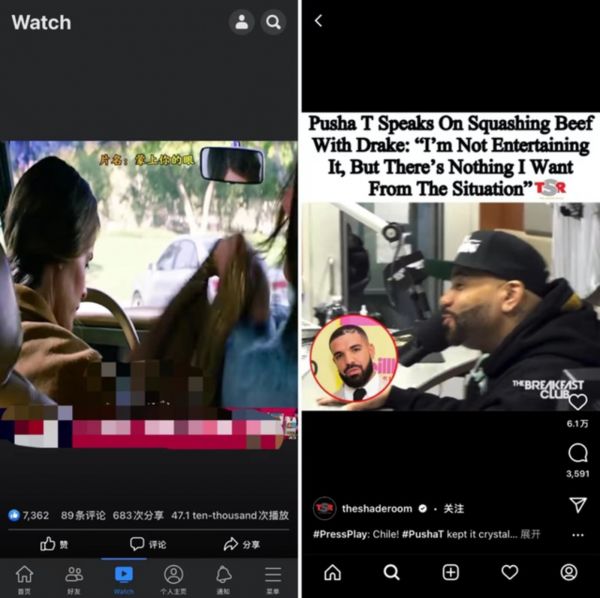 左:Facebook的Reels功能,右:Instagram的Reels功能