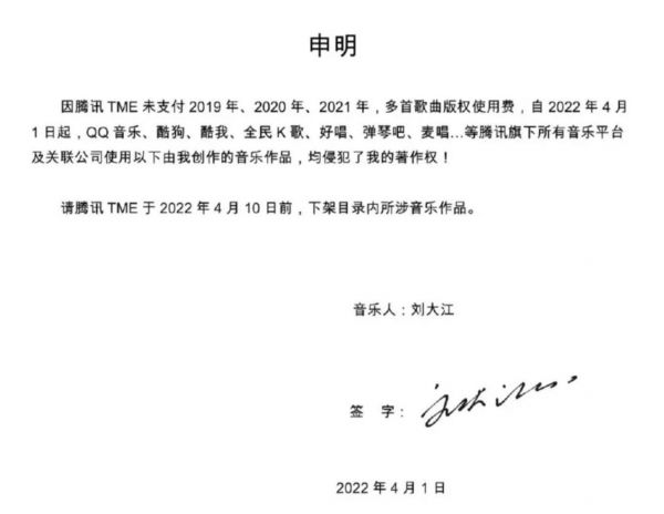 3、腾讯音乐被指控涉嫌侵犯词曲著作权后,未取得当事人谅解的情况下,把下架后的作品又一次上架,暴露了在线音乐平台管理的漏洞。