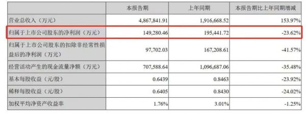 财报数据显示,本季度宁德时代营收 486.78 亿元,同比增长 153.97%;归属于上市公司股东的净利润 14.93 亿元,同比下跌 23.62%。