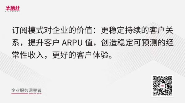 订阅模式对企业价值体现在更稳定持续的客户关系,提升客户 ARPU 值,创造稳定可预测的经常性收入,更好的客户体验四方面。