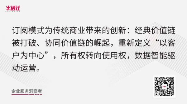 两个故事讲的都是订阅模式如何改变传统商业,实际上订阅模式并不是一个特别新的模式,但在今天市场大环境下,订阅模式确实给传统商业带来很多创新地方,比如经典价值链被打破,协同价值链的崛起,重新定义“以客户为中心”,所有权转向使用权,数据智能驱动运营。
