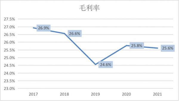然而,公司近5年毛利率却逐渐下滑。2021年鼎欣科技毛利率为25.6%,较2020年的25.8%下滑0.2个百分点。分板块来看,2021年系统集成业务的毛利率下滑较大,较上年同期 18.4%降至12.9%,对此公司解释主要由于上年同期项目单一规模较小,成本控制严格,盈利水平较高所致。不过对比2019年的13.7%,该业务板块的毛利率依然呈下滑趋势。同时IT服务板块的毛利率近两年也出现下降,显示公司在这两块业务的成本控制能力有所降低。