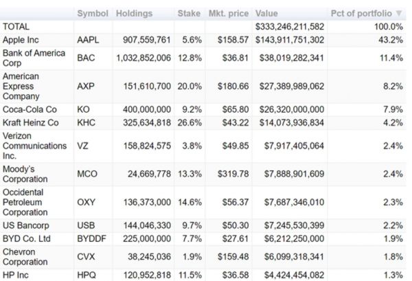 数据显示,在2021年巴菲特的投资版图里,苹果的功劳首屈一指。截止去年四季度末,伯克希尔持仓苹果股数为8.87亿股,持仓市值达1575亿美元,占投资组合比例高达47.61%,同时,在2021年仅仅一年的时间内,苹果股价飙升33%。