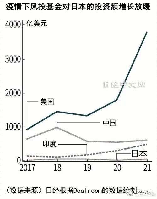 日本经济新闻(中文版:日经中文网)的调查显示,以日本风险企业为对象的2021年度投资额仅为美国的100分之1。日美之间的差距曾经因为企业风险投资(CVC)增加而缩小,但在新冠疫情加剧的2020年以后再次扩大。